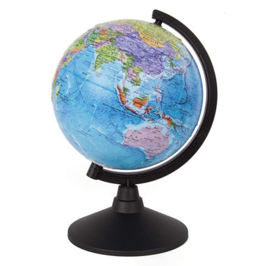 Для изучения истории и экономической географии школьнику необходимо купить глобус с политической картой мира. Он поможет ребенку максимально быстро и подробно изучить континенты, страны, их географическое положение и геополитическое значение. Глобус изготовлен из высококачественных нетоксичных материалов по современным технологиям. Пластиковые сфера и подставка устойчивы к случайным повреждениям. Кроме того, устойчивая подставка страхует глобус от нечаянного падения. Оптимальный диаметр глобуса 21 см позволяет использовать его как в личных целях, так и в учебных классах. Карта максимально подробная для данного диаметра с легкочитаемыми надписями. Кроме традиционных для политических карт названий стран, значимых административных центров на карту нанесены географические названия. Это важно для пространственного восприятия мира и изучения зависимости экономики стран от географического местоположения. Представленный глобус уникален – политическая карта мира дополнена рельефом ландшафта. Это позволяет более лучше представить географические особенности местности каждого государства. Политический глобус с рельефом местности не только учебное пособие, но и интерьерное украшение. Голубая сфера и яркие краски условных обозначений стран украсит парту школьника.