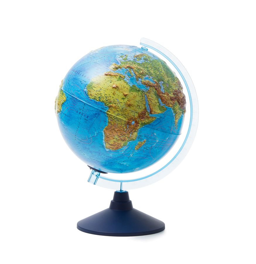 Глобус с двойной картой и рельефной поверхностью Глобен Ве022500261 предназначен для обучения детей основам географии и политического обустройства нашего мира. Изготовлен из пластика. Диаметр сферы 25 см. Устойчивая настольная подставка синего цвета. Карта максимально подробная для данного диаметра глобуса. Линия экватора выпуклая для тактильно восприятия. Поверхность сферы рельефная. Карта двойная физико-политическая, отражает одновременно ландшафт нашей планеты и политико-административное устройство нашего мира. Изоборажение карты соответсвует принятым мировым картографическим стандартам условного обозначения ландшафта и стран. Подсветка работает от батареек АА. Лампа подсветки съемная, цоколь Е14. Подарочная упаковка - фирменная картонная коробка. В комплектацию не входят батарейки. Для данного глобуса подходят батарейки размером АА.