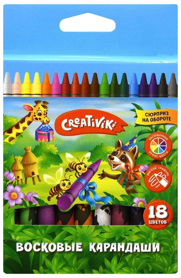 Восковые карандаши – это одни из первых карандашей ребенка. Благодаря удобному корпусу и небольшому размеру, они идеально подходят для детей от 3-х лет. Маленьким креативикам, а также их родителям очень понравятся яркие, сочные цвета и мягкость карандашей. Безусловно, это будущий хит продаж, не только из-за хорошего качества, но и из-за приятной цены. Длина карандаша — 88 мм, диаметр — 8 мм.