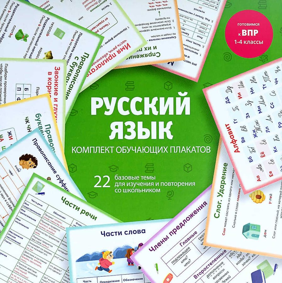 Сборник плакатов-памяток по русскому языку включает темы, которые вызывают наибольшие затруднения у школьников при подготовке к всероссийским проверочным работам (ВПР). Информация представлена в виде понятных таблиц и удобных алгоритмов. Достаточно повесить памятки над столом и периодически перелистывать.