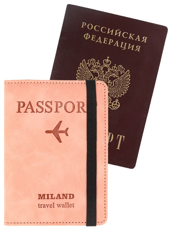 Обложка для паспорта А6 кожзам розовая с картхолдером с резинкой Вояж MILAND ОП-9628