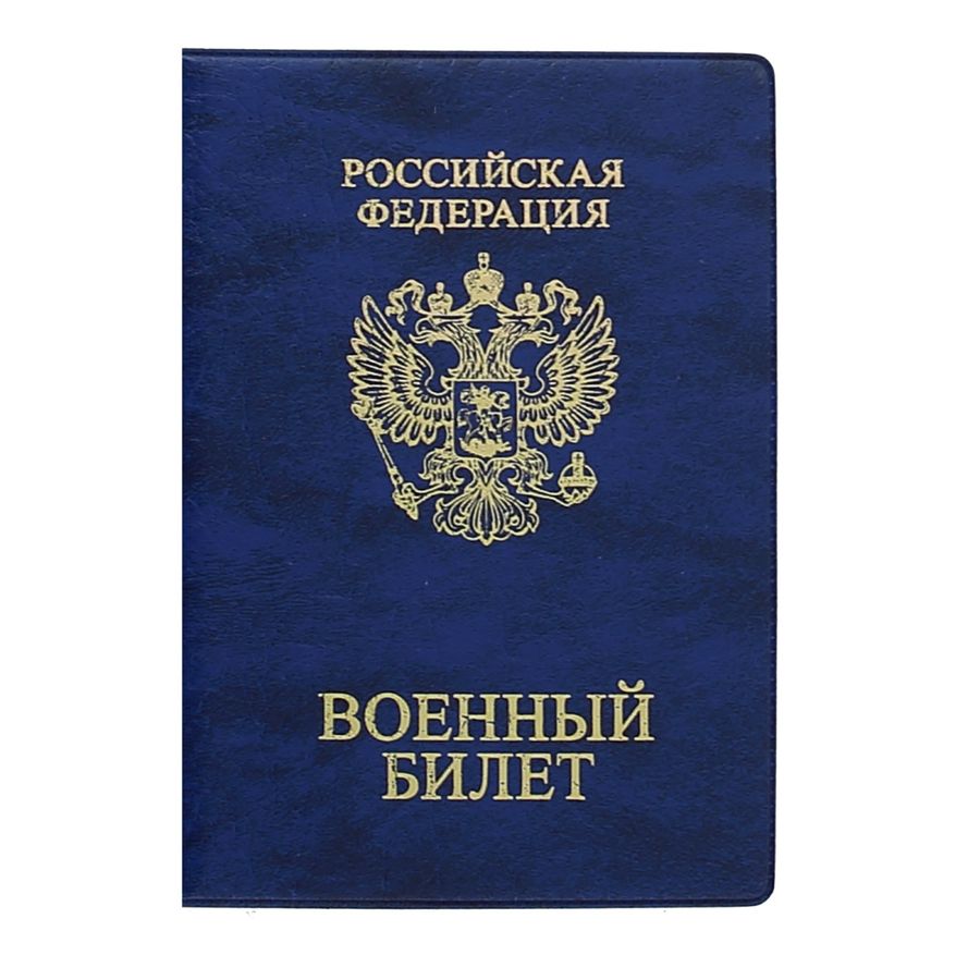 Подходит для военных билетов старого и нового образцов. Размер - 188 х 134 мм. Материал - ПВХ/картон