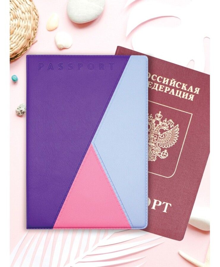 Обложка для паспорта "Трио", фиолетовая - Внутри картон - Размер - 134 х 188 мм - Материал - ПВХ