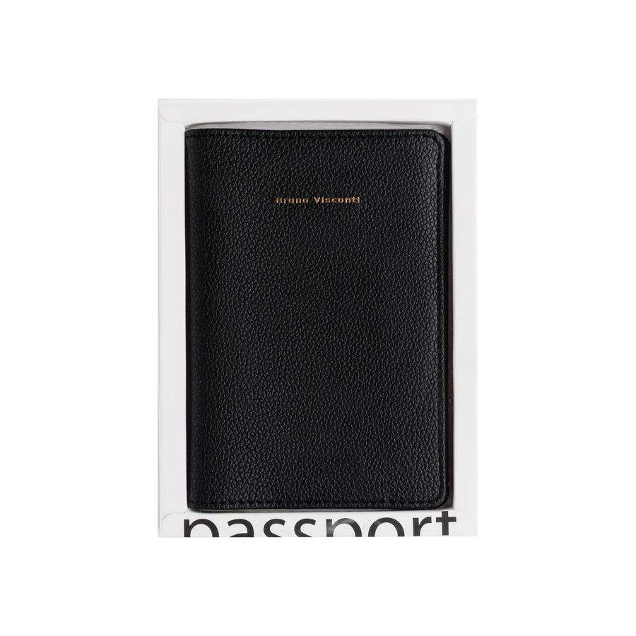 Однотонная черная обложка для паспорта ТМ Bruno Visconti изготовлена из приятного на ощупь материала — качественной фактурной веганской кожи. Практичные внутренние разделители обеспечивают удобное хранение паспорта вместе с важными документами, такими как визы, пенсионное свидетельство или банковские карты. Благодаря элегантному дизайну и лаконичному оформлению, обложка мягко подчеркнет вкус и статус своего владельца. Поставляется в индивидуальной упаковке, что делает ее отличным вариантом для подарка.