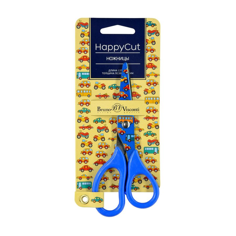 Ножницы детские 137мм HappyCut лезвие с принтом пласт.ручки ассорти BRUNO VISCONTI 60-0033/02