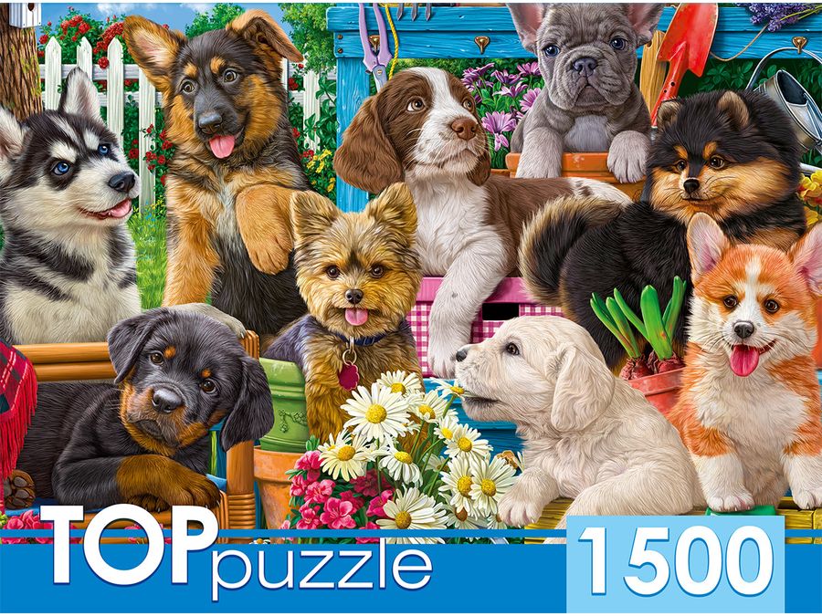 Пазлы 1500 элементов Компания щенков в саду TOPpuzzle ХТП1500-1588