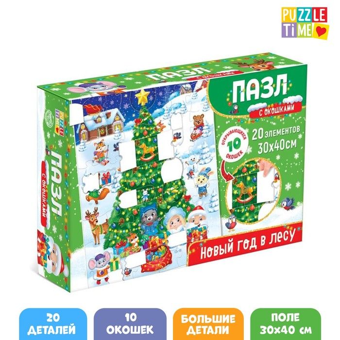 Пазлы с окошками - это пазлы с открывающимися окошками, в которые можно заглянуть и узнать, что внутри. Игра с пазлами поможет развить усидчивость, мелкую моторику рук, а также научит находить связь между частью и целым. Яркая картинка поднимет настроение и надолго привлечёт внимание малыша, а также поспособствует развитию цветового и зрительного восприятия, внимательности и логического мышления. В коробке 20 деталей, детали двух разных размеров. Обычные маленькие и большие детали с окошками внутри. Собрав все детали вы получите картинку размером 40 × 30 см. Дополнительно Размер игрового поля: 40 × 30 см. Рекомендовано детям старше 3 лет. Комплектация 20 деталей. 10 окошек.