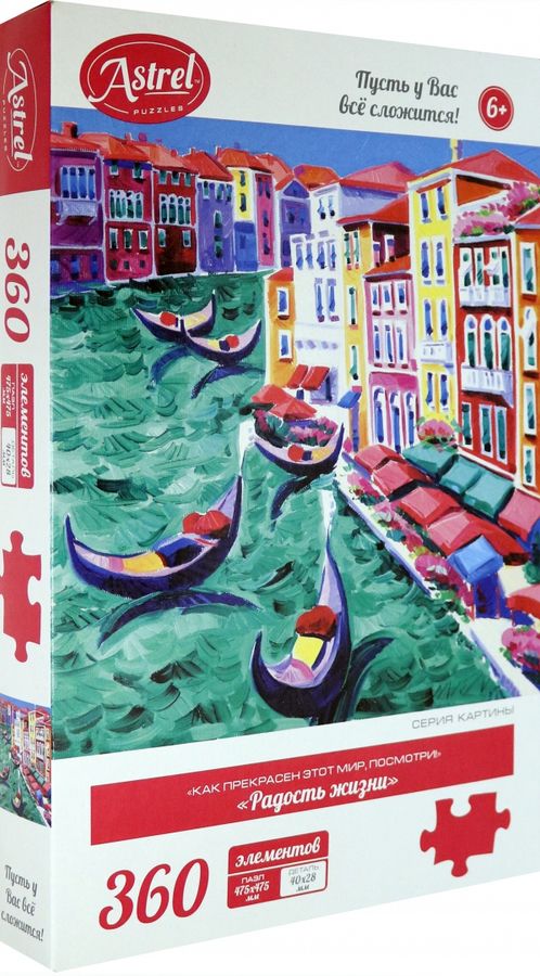 Уже полюбившаяся многим серия "Картины" взрослых пазлов Astrel пополнилась новыми прекрасными сюжетами. Вместе с пазлами из 360 элементов отправьтесь в незабываемое приключение по миру в поисках новых и ярких впечатлений. Соберите всю коллекцию пазлов! Готовые картины станут превосходным украшением вашего дома и подарят уютное настроение. Размер собранной картинки: 475х475 мм. Размер детали: 40х28 мм. Материал: картон, бумага. Для детей от 6-ти лет. Не рекомендуется детям до 3-х лет. Содержит мелкие детали. Сделано в России.