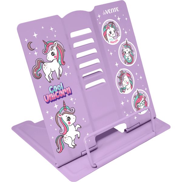 Подставка для учебников и книг "deVENTE. Unicorn" 20x19 см, металлическая окрашенная, вес 430 г, с противоскользящими ножками, с полноцветным рисунком, в пластиковом пакете с европодвесом