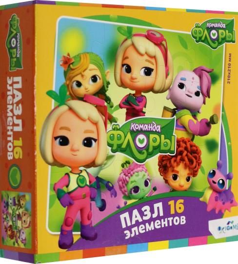 Пазл 16 элементов, основанный на любимых сюжетах мультфильма Команда Флоры понравится любому ребенку, а сборка яркой картинки принесет радость не только малышам, но и их родителям. Соберите всю коллекцию новых пазлов! Размер пазла: 210х210 мм. Размер одной детали: 68х56 мм. Изготовлено из бумаги, картона. Для детей старше 3-х лет.