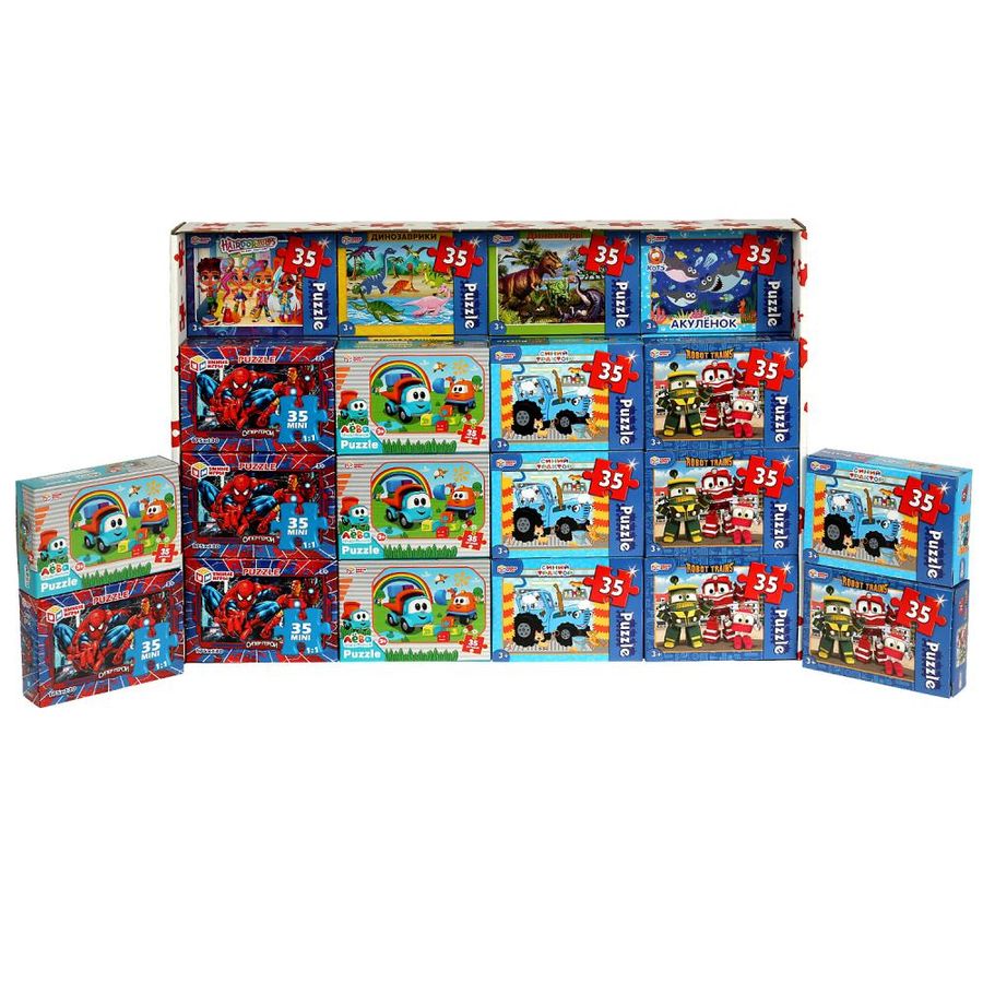 Классические пазлы в коробке «Микс» ТМ «Умные игры» непременно понравятся маленьким любознайкам: - 8 вариантов пазлов в упаковке: «Динозаврики», «Акулёнок», «Синий трактор», «Супергерои», «Грузовичок Лёва», «Robot Trains», «Hairdorables», «Динозавры» - 35 деталей - размер готовой картинки: 175 х 130 мм - любимые персонажи - насыщенные цвета - все элементы хорошо и плотно соединяются друг с другом Задача ребёнка – в правильной последовательности соединить элементы пазла друг с другом и получить в результате красочную картинку с изображением героев любимых мультсериалов или милых персонажей. Сборка пазлов - это очень увлекательное занятие, в процессе которого дети учатся искать и совмещать детали разной формы, с каждым разом делая это всё лучше и быстрее. Собирая пазлы ТМ «Умные игры», ребёнок развивает: - внимание - память - мышление - моторику - усидчивость Размер одной коробки с пазлами: 3 х 9 х 7 см. Материал: картон. В упаковке 32 шт. Размер упаковки: 27 х 37 х 5 см. Рекомендовано детям от 3-х лет.