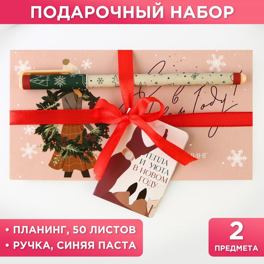 Подарочный набор станет прекрасным подарком на праздник. Планинг Форма: прямоугольник; Вид обложки: мягкая; Количество листов: 50. Ручка Материал корпуса: пластик; Вид ручки: шариковая; Стержень заменяемый: да; Цвет стержня: синий; Тип: неавтоматическая ручка. Упаковка: плёнка.
