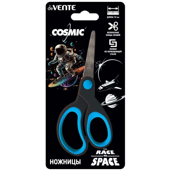 Ножницы детские "deVENTE. Cosmic" 13 см с закругленными кончиками лезвий, прорезиненными ручками, в картонном блистере.