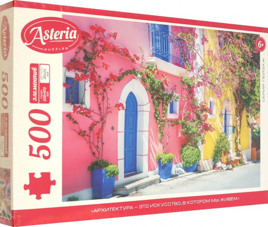Пазл 500 элементов из новой серии Asteria захочется собрать и взрослым и детям, ведь сборка пазла - это отличное времяпрепровождение для всей семьи! Пазлы развивают логику, внимательность и мелкую моторику. Позвольте себе отдых от ежедневной суеты! Рекомендуемый возраст: 6+ Количество элементов: 500 Размер собранного пазла: 330х470 мм. Размер детали: 30х25 мм. Материал: картон, бумага. Не предназначено для детей младше 3 лет.