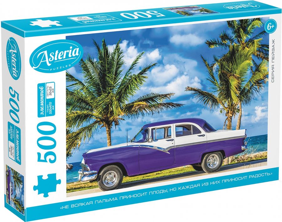 Пазл 500 элементов из новой серии Asteria захочется собрать и взрослым и детям, ведь сборка пазла - это отличное времяпрепровождение для всей семьи! Пазлы развивают логику, внимательность и мелкую моторику. Позвольте себе отдых от ежедневной суеты! Рекомендуемый возраст: 6+ Количество элементов: 500 Размер собранного пазла: 330х470 мм. Размер одной детали: 30х25 мм. Материалы: картон, бумага. Не предназначено для детей младше 3 лет.