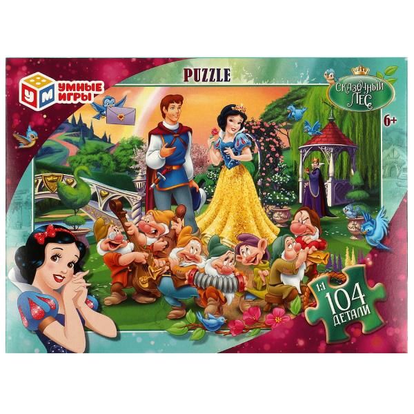 Классические пазлы в коробке «Сказочный лес» ТМ «Умные игры» - отличная развивающая игра для детей: - 104 детали - размер готовой картинки: 237 х 330 мм - насыщенные цвета - все элементы хорошо и плотно соединяются друг с другом Задача ребёнка – в правильной последовательности соединить элементы пазла друг с другом и получить в результате красочную картину с изображением очаровательной Белоснежки, её друзей-гномов и других персонажей известной сказки. Сборка пазлов - это очень увлекательное занятие, в процессе которого дети учатся искать и совмещать детали разной формы, с каждым разом делая это всё лучше и быстрее. Собирая пазлы ТМ «Умные игры», ребёнок будет развивать: - внимание - память - мышление - моторику - усидчивость Размер: 190 х 141 х 35 мм. Материал: картон. Рекомендовано детям старше 6-ти лет.