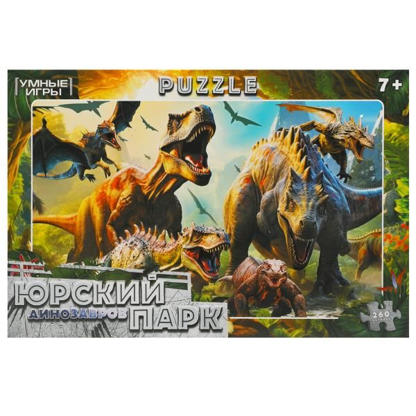 Классические пазлы в коробке «Юрский парк динозавров» ТМ «Умные игры» - отличная развивающая игра для детей: - 260 деталей - размер готовой картинки: 331 х 238 мм - яркие цвета - все элементы хорошо и плотно соединяются друг с другом Данный пазл представляет собой игру-головоломку, в которой необходимо в правильной последовательности соединить элементы друг с другом и получить в результате красочную картинку с изображением древних ящеров. Сборка пазлов - это очень увлекательное занятие, в процессе которого дети учатся искать и совмещать детали разной формы, с каждым разом делая это всё лучше и быстрее. Собирая пазлы ТМ «Умные игры», ребёнок будет развивать: - внимание - память - мышление - моторику - усидчивость Размер упаковки: 285 x 190 x 33 мм. Материал: картон. Рекомендовано детям от 7-ми лет.