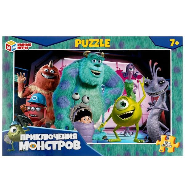 Классические пазлы в коробке «Приключения монстров» ТМ «Умные игры» - отличная развивающая игра для юных любознаек: - 160 деталей - размер готовой картинки: 237 х 330 мм - яркие цвета - любимые персонажи - все элементы хорошо и плотно соединяются друг с другом Данный пазл представляет собой игру-головоломку, в которой необходимо в правильной последовательности соединить элементы друг с другом и получить в результате красочную картинку с изображением героев известного мультфильма про забавных монстров. Сборка пазлов - это очень увлекательное занятие, в процессе которого дети учатся искать и совмещать детали разной формы, с каждым разом делая это всё лучше и быстрее. Собирая пазлы ТМ «Умные игры», ребёнок будет развивать: - внимание - память - мышление - моторику - усидчивость Размер упаковки: 285 x 190 x 33 мм. Материал: картон. Рекомендовано детям от 7-ми лет.