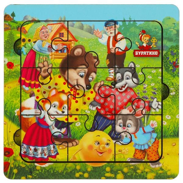 Деревянная игрушка-пазл «Колобок» ТМ «Буратино» - отличный развивающий подарок для маленьких любознаек: - игровая основа - 9 ярких вкладышей-пазлов - экологичный материал: натуральное дерево - удобный небольшой формат Задача малыша - сложить из кусочков пазлов единую картинку с изображением персонажей известной русской народной сказки. Яркая и интересная игра непременно увлечёт ребёнка, поможет ему увлекательно и с пользой провести время. Игра с пазлами-вкладышами ТМ «Буратино» будет способствовать развитию: - мелкой моторики - логического мышления - внимания - памяти Размер: 10 х 10 см. Материал: дерево. Рекомендовано детям от 3-х лет.