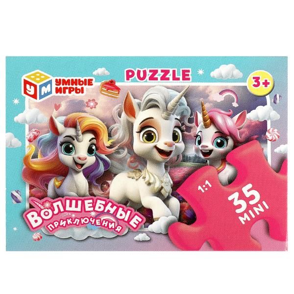 Классические пазлы в коробке «Волшебные приключения» ТМ «Умные игры» непременно понравятся маленьким любознайкам: - 35 деталей (mini) - размер готовой картинки: 175 х 130 мм - яркие цвета - все элементы хорошо и плотно соединяются друг с другом Данный пазл представляет собой игру-головоломку, в которой необходимо в правильной последовательности соединить элементы друг с другом и получить в результате красочную картинку с изображением милых единорогов. Сборка пазлов - это очень увлекательное занятие, в процессе которого дети учатся искать и совмещать детали разной формы, с каждым разом делая это всё лучше и быстрее. Собирая пазлы ТМ «Умные игры», ребёнок будет развивать: - внимание - цветовое восприятие - логическое мышление - мелкую моторику - усидчивость Размер упаковки: 90 х 65 х 25 мм. Материал: картон. Рекомендовано детям от 3-х лет.
