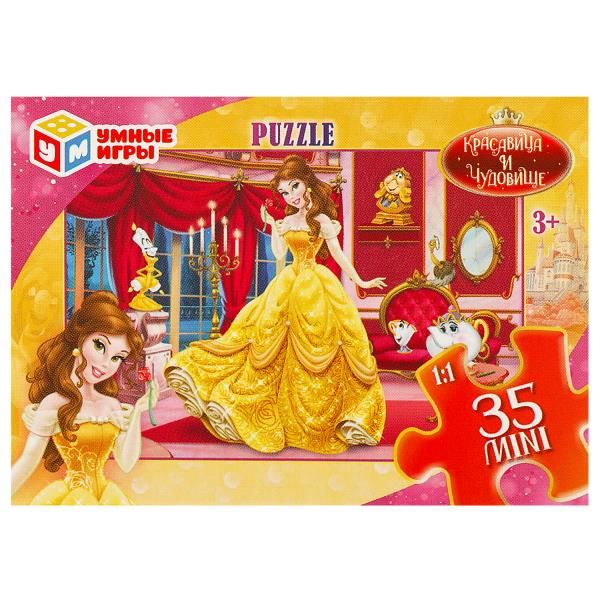 Классические пазлы в коробке «Красавица и Чудовище» ТМ «Умные игры» непременно понравятся маленьким любознайкам: - 35 деталей (mini) - размер готовой картинки: 175 х 130 мм - яркие цвета - все элементы хорошо и плотно соединяются друг с другом Данный пазл представляет собой игру-головоломку, в которой необходимо в правильной последовательности соединить элементы друг с другом и получить в результате красочную картинку с изображением красавицы Белль из известной сказки. Сборка пазлов - это очень увлекательное занятие, в процессе которого дети учатся искать и совмещать детали разной формы, с каждым разом делая это всё лучше и быстрее. Собирая пазлы ТМ «Умные игры», ребёнок будет развивать: - внимание - цветовое восприятие - логическое мышление - мелкую моторику - усидчивость Размер упаковки: 90 х 65 х 25 мм. Материал: картон. Рекомендовано детям от 3-х лет.