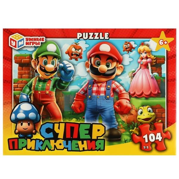 Классические пазлы в коробке «Суперприключения» ТМ «Умные игры» - отличная развивающая игра для детей: - 104 детали - размер готовой картинки: 237 х 330 мм - яркие цвета - все элементы хорошо и плотно соединяются друг с другом Данный пазл представляет собой игру-головоломку, в которой необходимо в правильной последовательности соединить элементы друг с другом и получить в результате красочную картинку с изображением любимых персонажей. Сборка пазлов - это очень увлекательное занятие, в процессе которого дети учатся искать и совмещать детали разной формы, с каждым разом делая это всё лучше и быстрее. Собирая пазлы ТМ «Умные игры», ребёнок будет развивать: - внимание - память - мышление - моторику - усидчивость Размер: 190 х 141 х 35 мм. Материал: картон. Рекомендовано детям старше 6-ти лет.