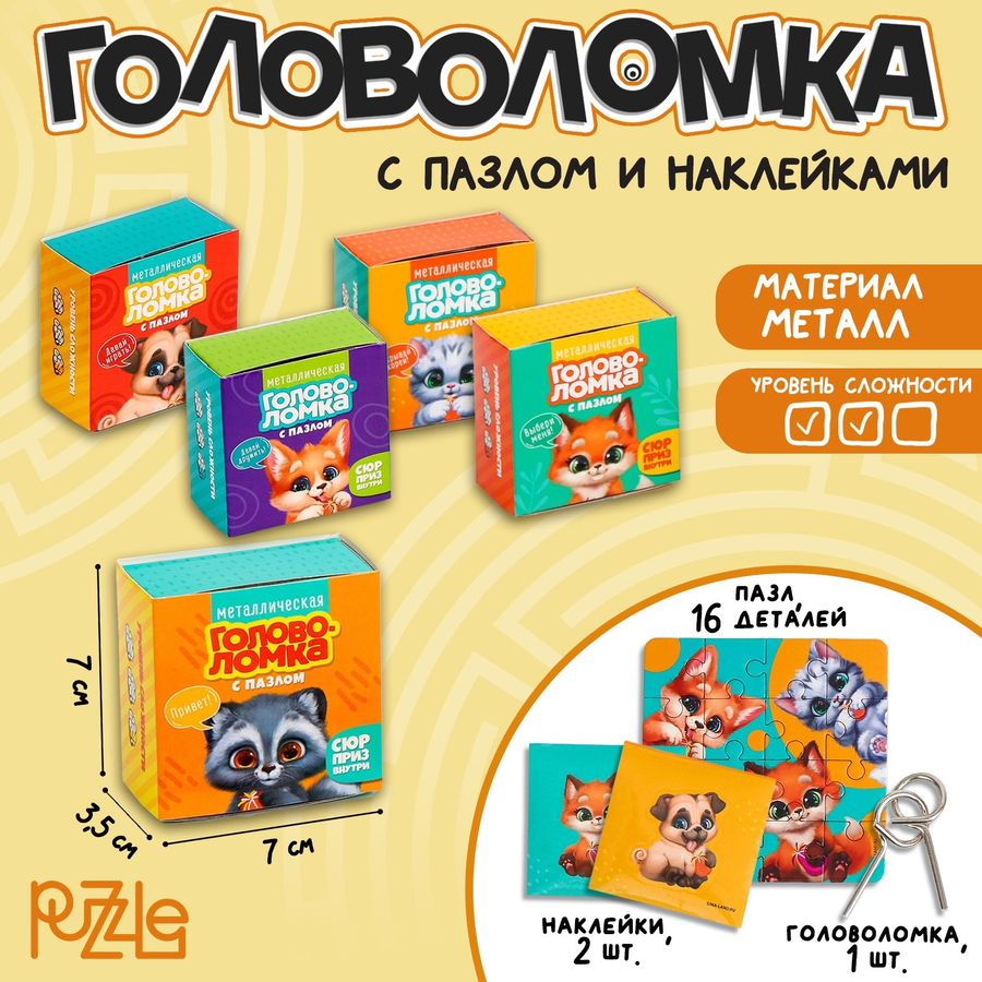 Материал: металл В наборе: Пазл, 16 деталей, Наклейки, 2 шт, Головоломка, 1 шт
