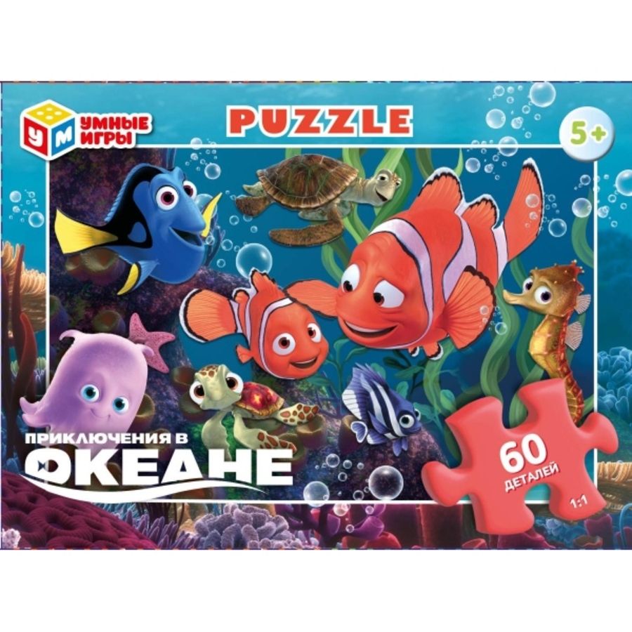 Классические пазлы в коробке «Приключения в океане» ТМ «Умные игры» непременно понравятся детям: - 60 деталей - размер готовой картинки: 330 х 237 мм - яркие цвета - любимые персонажи - все элементы хорошо и плотно соединяются друг с другом Данный пазл представляет собой игру-головоломку, в которой необходимо в правильной последовательности соединить элементы друг с другом и получить в результате красочную картинку с изображением забавных морских обитателей из известного мультфильма. Сборка пазлов - это очень увлекательное занятие, в процессе которого дети учатся искать и совмещать детали разной формы, с каждым разом делая это всё лучше и быстрее. Собирая пазлы ТМ «Умные игры», ребёнок будет развивать: - внимание - память - мышление - моторику - усидчивость Размер упаковки: 190 x 141 x 35 мм. Материал: картон. Рекомендовано детям от 5-ти лет.