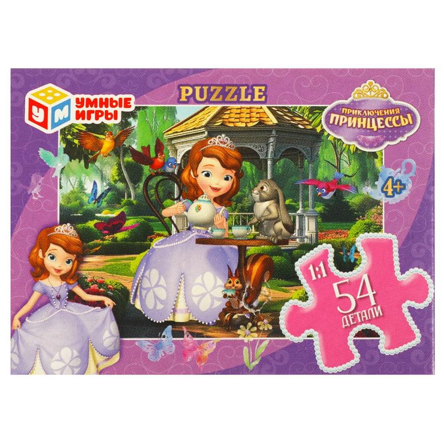 Классические пазлы в коробке «Приключения принцессы» ТМ «Умные игры» непременно понравятся маленьким любознайкам: - 54 детали - размер готовой картинки: 175 х 130 мм - яркие цвета - все элементы хорошо и плотно соединяются друг с другом Данный пазл представляет собой игру-головоломку, в которой необходимо в правильной последовательности соединить элементы друг с другом и получить в результате красочную картинку с изображением очаровательной принцессы в окружении её друзей - животных и птиц. Сборка пазлов - это очень увлекательное занятие, в процессе которого дети учатся искать и совмещать детали разной формы, с каждым разом делая это всё лучше и быстрее. Собирая пазлы ТМ «Умные игры», ребёнок будет развивать: - внимание - цветовое восприятие - логическое мышление - мелкую моторику - усидчивость Размер: 90 х 65 х 25 мм. Материал: картон. Рекомендовано детям от 4-х лет.