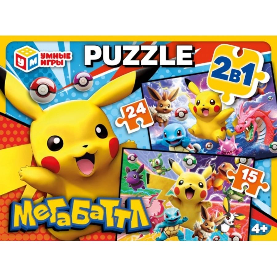Набор пазлов в коробке 2 в 1 «Мегабаттл» ТМ «Умные игры» - отличный подарок для маленького любознайки: - в наборе 2 пазла с разным количеством деталей: 15 и 24 - размер собранной картинки: 300 х 215 мм - яркие цвета - все элементы хорошо и плотно соединяются друг с другом - любимые персонажи Задача ребёнка – в правильной последовательности соединить пазлы друг с другом и получить в результате готовую картину с изображением милых зверушек с суперспособностями. Всего в наборе 2 варианта картинок, каждая из которых состоит из разного количества деталей: сначала можно научиться собирать вариант с наименьшим количеством элементов, тренируя и закрепляя навыки сборки, а затем постепенно переходить к более сложным композициям. Игра с пазлами ТМ «Умные игры» развивает у ребёнка: - внимание - память - мышление - моторику - усидчивость Размер упаковки: 190 х 140 х 35 мм. Материал: картон. Рекомендовано детям от 3-х лет.