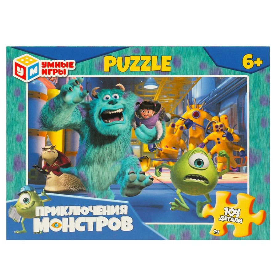 Классические пазлы в коробке «Приключения монстров» ТМ «Умные игры» - отличная развивающая игра для детей: - 104 детали - размер готовой картинки: 237 х 330 мм - яркие цвета - любимые персонажи - все элементы хорошо и плотно соединяются друг с другом Задача ребёнка – в правильной последовательности соединить элементы пазла друг с другом и получить в результате красочную картину с изображением героев известного мультфильма про забавных монстров. Сборка пазлов - это очень увлекательное занятие, в процессе которого дети учатся искать и совмещать детали разной формы, с каждым разом делая это всё лучше и быстрее. Собирая пазлы ТМ «Умные игры», ребёнок будет развивать: - внимание - память - мышление - моторику - усидчивость Размер: 190 х 141 х 35 мм. Материал: картон. Рекомендовано детям старше 6-ти лет.