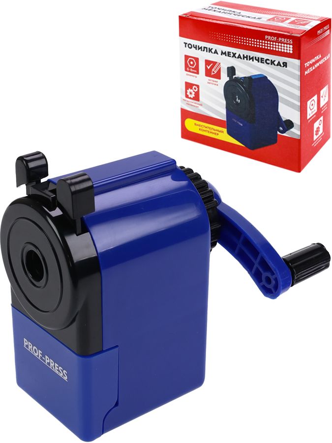 Точилка механическая 1отв. пластик корп. черный синий PROF-PRESS ТК-4649