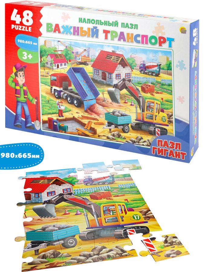 Пазлы 48 элементов напольные гигант Важный транспорт РЫЖИЙ КОТ П48-2461
