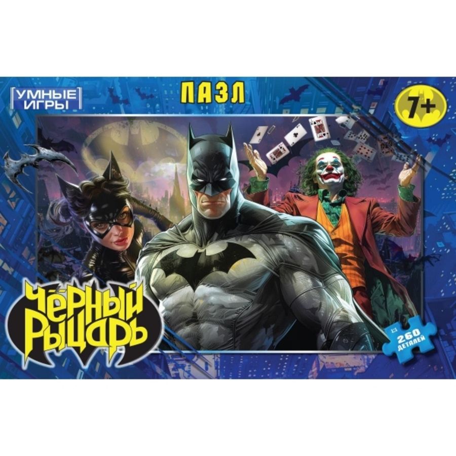 Классические пазлы в коробке «Чёрный рыцарь» ТМ «Умные игры» - отличная развивающая игра для детей: - 260 деталей - размер готовой картинки: 331 х 238 мм - яркие цвета - все элементы хорошо и плотно соединяются друг с другом Данный пазл представляет собой игру-головоломку, в которой необходимо в правильной последовательности соединить элементы друг с другом и получить в результате красочную картинку с изображением любимых супергероев. Сборка пазлов - это очень увлекательное занятие, в процессе которого дети учатся искать и совмещать детали разной формы, с каждым разом делая это всё лучше и быстрее. Собирая пазлы ТМ «Умные игры», ребёнок будет развивать: - внимание - память - мышление - моторику - усидчивость Размер упаковки: 285 x 190 x 33 мм. Материал: картон. Рекомендовано детям от 7-ми лет.