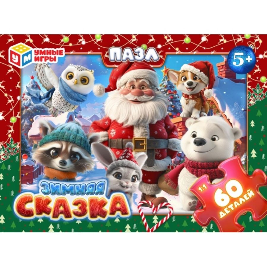 Классические пазлы в коробке «Зимняя сказка» ТМ «Умные игры» – отличный подарок для детей: - 60 деталей - размер готовой картинки: 330 х 237 мм - яркие цвета - все элементы хорошо и плотно соединяются друг с другом Данный пазл представляет собой игру-головоломку, в которой необходимо в правильной последовательности соединить элементы друг с другом и получить в результате красочную картинку с изображением главного новогоднего персонажа и милых лесных обитателей. Сборка пазлов – это очень увлекательное занятие, в процессе которого дети учатся искать и совмещать детали разной формы, с каждым разом делая это всё лучше и быстрее. Собирая пазлы ТМ «Умные игры», ребёнок будет развивать: - внимание - память - мышление - моторику - усидчивость Материал: картон. Рекомендовано детям от 5-ти лет.