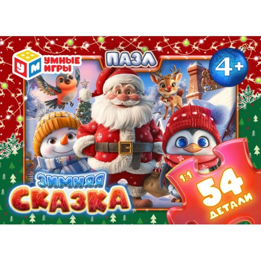 Классические пазлы в коробке «Зимняя сказка» ТМ «Умные игры» непременно понравятся маленьким любознайкам: - 54 детали - размер готовой картинки: 175 х 130 мм - яркие цвета - все элементы хорошо и плотно соединяются друг с другом Данный пазл представляет собой игру-головоломку, в которой необходимо в правильной последовательности соединить элементы друг с другом и получить в результате красочную картинку с изображением новогодних персонажей и милых зверят. Сборка пазлов – это очень увлекательное занятие, в процессе которого дети учатся искать и совмещать детали разной формы, с каждым разом делая это всё лучше и быстрее. Собирая пазлы ТМ «Умные игры», ребёнок будет развивать: - внимание - цветовое восприятие - логическое мышление - мелкую моторику - усидчивость Размер: 90 х 65 х 25 мм. Материал: картон. Рекомендовано детям от 4-х лет.