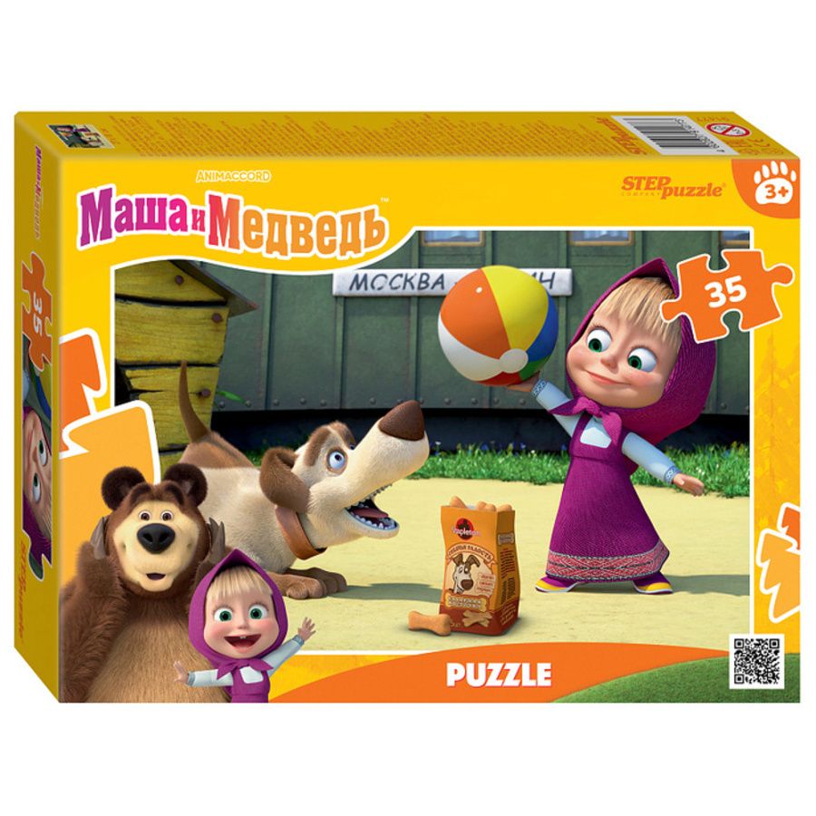 Пазл «Маша и Медведь. Лесные истории» с героями одноименного мультфильма. Характеристики пазла: -качественное изображение; -материал – картон; -крупные детали пазла (4,6 × 4,5 см) (удобны в -манипулировании, эргономичны для детской руки); -экологически чистые, нетоксичные материалы (компания Step Puzzle гарантирует высокое качество пазла и точность подгонки). Размер собранного изображения - 27×18 см. Для кого подходит? Пазл подходит для детей 3-х лет.