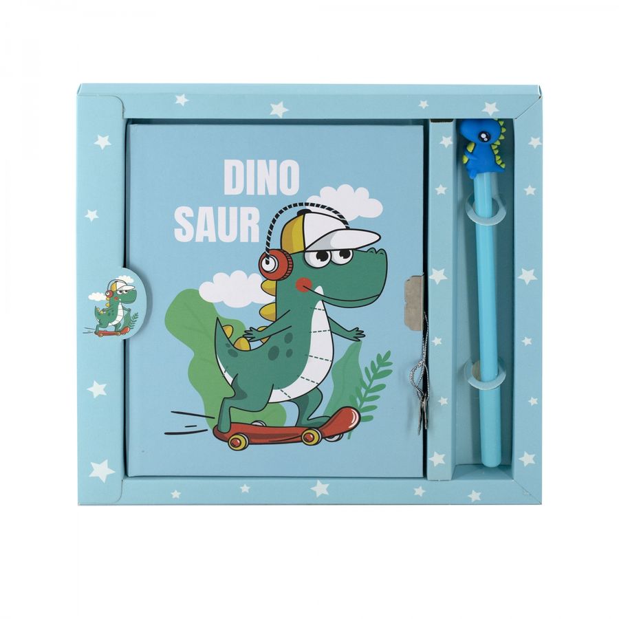 Набор Блокнот с замком 130х180мм 48л клетка тв.обл. + Ручка Веселый дино мятный ALINGAR AL11300/1