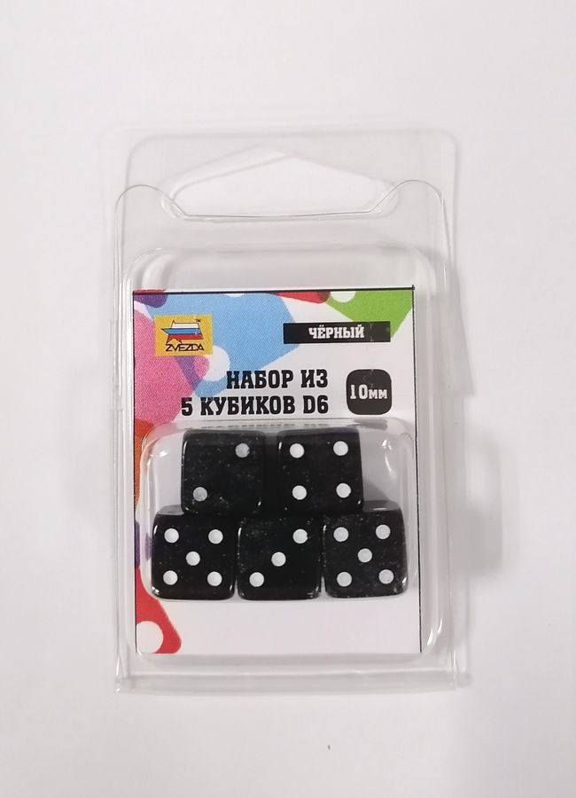 Кубики игровые 5шт D6 10мм Черный с белыми точками /блистер Zvezda 1257