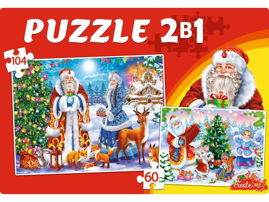 Занимательная игра пазлы 2 в 1 "Новогодний праздник" развивает мелкую моторику рук, память, внимание посредством собирания яркой и красочной картинки. Вы с малышом с удовольствием проведёте время. Количество элементов: 60 и 104 шт.