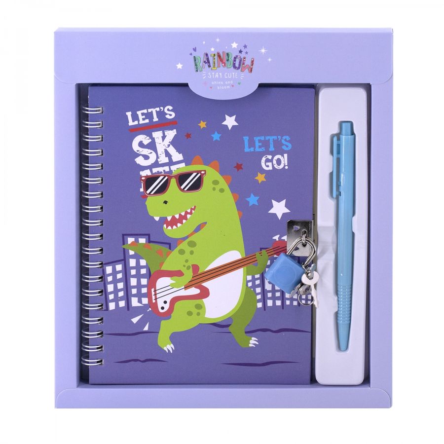 Набор Блокнот с замком 115х150мм 45л клетка тв.обл. + Ручка Дино сиреневый ALINGAR AL11291/3