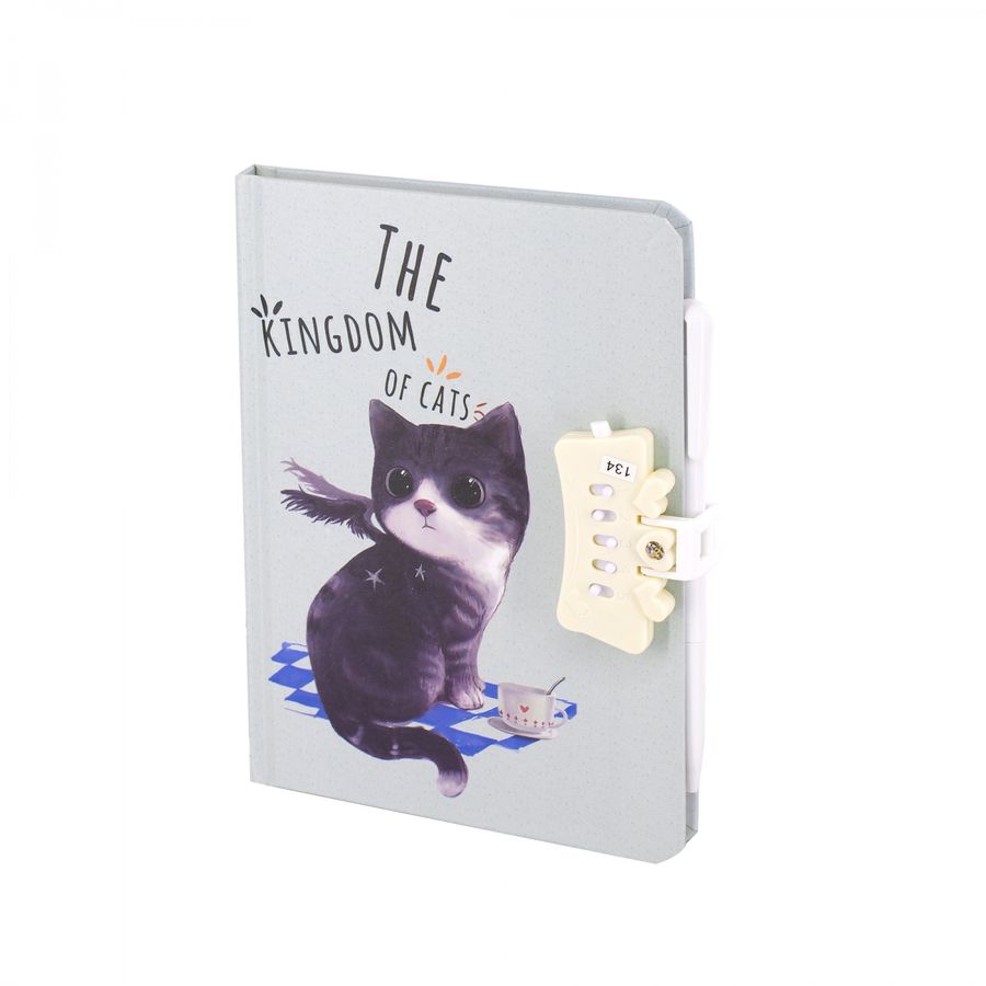 Подарочный блокнот 13,5 см * 19,5 см , 7БЦ, Alingar, мат. ламинация, код. замочек, ручка, 80л., диз. внутр. блок, линия, "Королевство кошек"