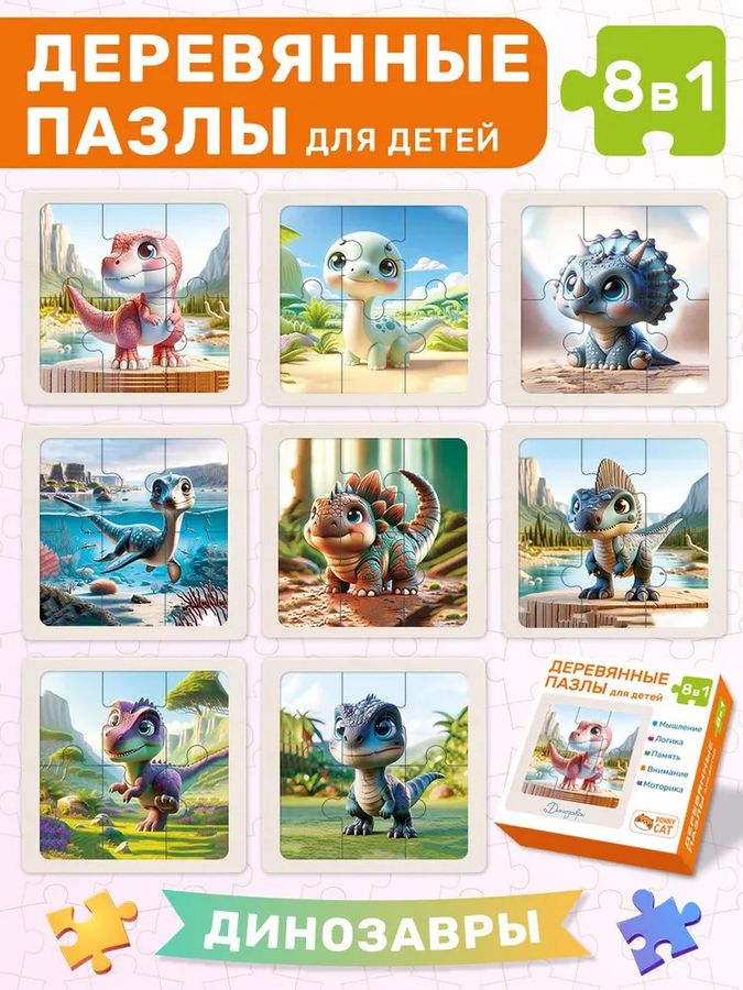 Деревянные пазлы 8 в 1 для детей – это отличная развивающая игрушка, которая прекрасно подходит для малышей и станет замечательным подарком на Рождество и Новый год. Пазлы выполнены из высококачественных материалов, что гарантирует их безопасность и долговечность в использовании. Каждый элемент набора погружает ребенка в увлекательный мир динозавров, способствуя развитию воображения и творческих способностей. Эта рамка-вкладыш предназначена для самых маленьких и не только развлекает, но и обучает. С помощью ярких деталей, выполненных в виде различных видов динозавров, дети будут развивать мелкую моторику и координацию движений. Игрушка подходит для раннего обучения, позволяя детям знакомиться с формами и цветами, а также учиться различать динозавров. Комплектация предлагает 8 уникальных элементов, которые легко помещаются в рамку, что делает игру увлекательной и интересной. Пазлы легко собирать и разбирать, что идеально подходит для игр как дома, так и на свежем воздухе. Они стимулируют любопытство и желание учиться, а также развивают навыки общения при совместной игре с родителями и друзьями. Деревянные пазлы 8 в 1 – это идеальный способ провести время с пользой для развития вашего ребенка, а также оригинальное решение для подарка, который станет ярким акцентом в коллекции игрушек вашего малыша. Не упустите возможность порадовать своего ребенка такой замечательной игрушкой, которая внесет радость в его мир и поможет в обучении. Эта игрушка станет незаменимым помощником в развитии ребенка, а также отличным способом провести время с семьей в увлекательной игре.