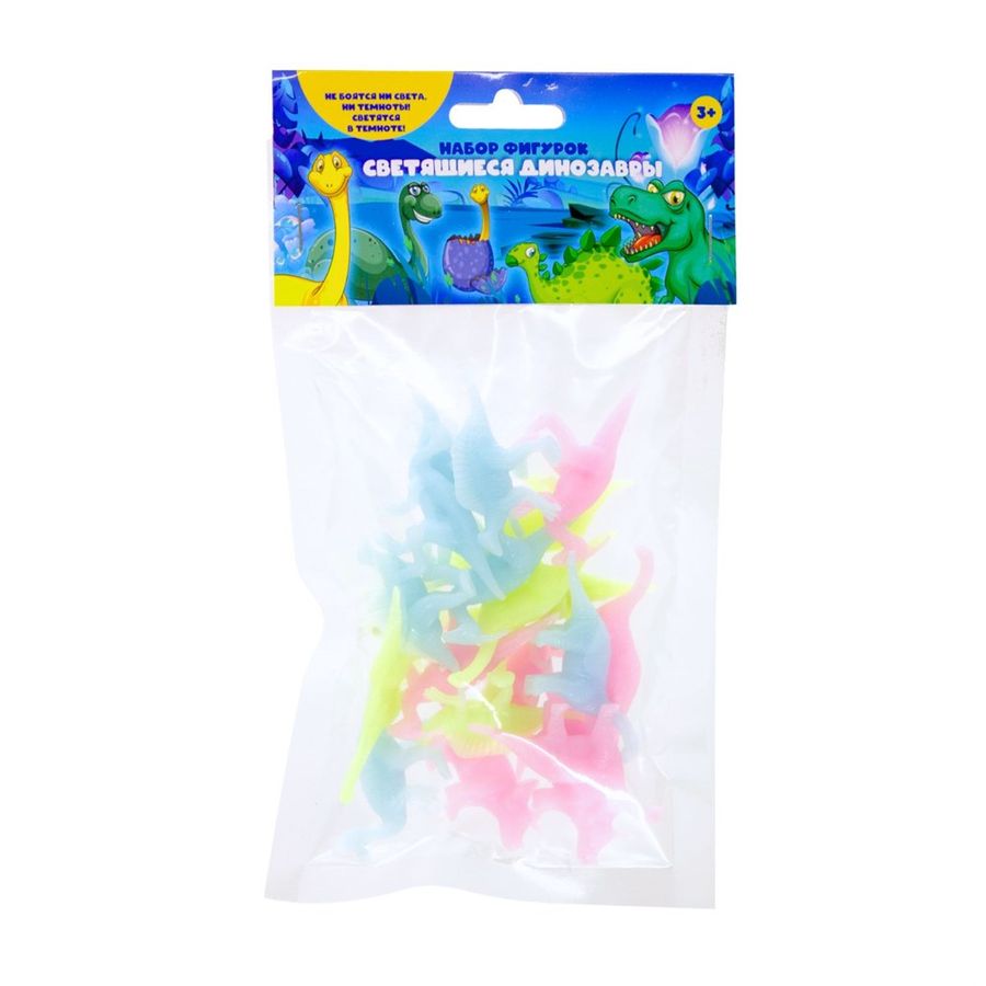 Учёные открыли новый вид динозавров, теперь вам предстоит их изучить! В игровом наборе «Светящиеся динозавры» вы найдёте двадцать светящихся фигурок. Они изготовлены из прочного пластика и упакованы в пакет с красочным хедером и европодвесом. Чтобы динозавры светились ярче, предварительно подержите их на ярком свете лампы. Такие необычные фигурки обязательно понравятся каждому любителю динозавров. Их можно использовать в качестве необычных игровых фишек, а также придумывать удивительные истории и давать фигуркам разные имена. В наборе: фигурки динозавров 20 шт. Упаковка: пластиковый пакет с хедером 21 х 12 см Возраст: 3+