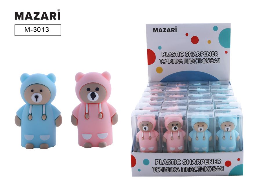 Точилка 1отд. пласт. Мишка ассорти MAZARI M-3013