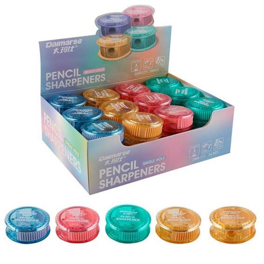 Точилка пластиковая 1 отверстие 20*46мм контейнер DAIMARSE КОКОС 242193 ассорти 4 вида