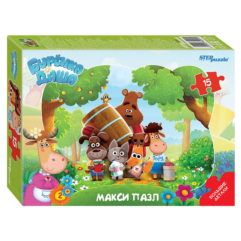 Контурный макси пазл «Буренка Даша» c героями одноименного мультфильма. Фигурный пазл с крупными деталями эргономичен для детской руки. Развивает внимание и память. Тренирует мелкую моторику. Характеристики пазла: материал – картон; качественное изображение; фигурная рамка; экологически чистые, нетоксичные материалы (компания Step Puzzle гарантирует высокое качество пазла и точность подгонки). Для кого? Пазл подходит для детей от 2-х лет.