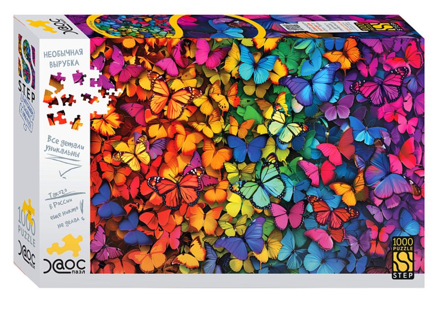 Пазл "Бабочки" – 1000 элементов яркой красоты в одном кадре! Погрузитесь в мир красочных бабочек, собрав этот удивительный пазл из нашей новой коллекции «ХАОС». Яркие крылья изящных созданий оживут перед вашими глазами, создавая настоящую картину природы прямо у вас дома. Такой пазл станет отличным презентом для любого случая – будь то день рождения, Новый год или просто знак внимания близкому человеку. Особенности пазла: Необычная вырубка: Закругленные края и хаотичное расположение элементов создадут уникальный опыт сборки. Такого в России еще никто не делал! Высококачественное исполнение: Изготовлен из плотного картона, обеспечивающего чёткость и долговечность изображения. Яркая палитра цветов: Каждая бабочка уникальна и поражает своим разнообразием оттенков, делая готовую картину поистине завораживающей. Идеален для любителей головоломок: 1000 деталей позволят вам провести часы за увлекательной сборкой, тренируя внимание и терпение. Расслабляющее хобби: Процесс сборки пазла поможет снять стресс и отвлечься от повседневной суеты, погружаясь в мир искусства и природы. Характеристики пазла: детали пазла 2×1,8 см; размер собранного изображения - 48×68 см.. Для кого? Пазл подходит для взрослых и детей от 14 лет. Подарите себе или близким мгновения радости и эстетического наслаждения с пазлом "Бабочки". Это идеальный выбор для тех, кто ценит красоту и любит создавать ее своими руками! Готовая работа украсит любую комнату, добавляя ей нотку природной гармонии и красоты.