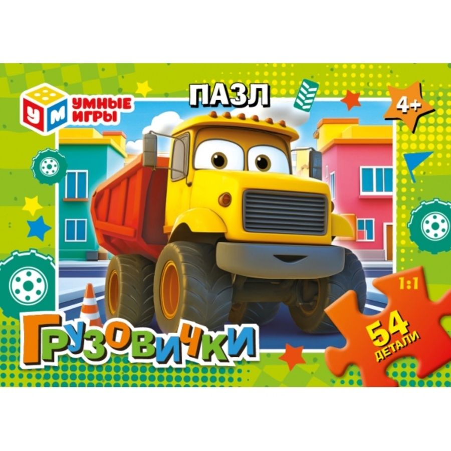 Классические пазлы в коробке «Грузовички» ТМ «Умные игры» непременно понравятся маленьким любознайкам: - 54 детали - размер готовой картинки: 175 х 130 мм - яркие цвета - все элементы хорошо и плотно соединяются друг с другом Данный пазл представляет собой игру-головоломку, в которой необходимо в правильной последовательности соединить элементы друг с другом и получить в результате красочную картинку с изображением забавной мультяшной машинки. Сборка пазлов – это очень увлекательное занятие, в процессе которого дети учатся искать и совмещать детали разной формы, с каждым разом делая это всё лучше и быстрее. Собирая пазлы ТМ «Умные игры», ребёнок будет развивать: - внимание - цветовое восприятие - логическое мышление - мелкую моторику - усидчивость Размер: 90 х 65 х 25 мм. Материал: картон. Рекомендовано детям от 4-х лет.
