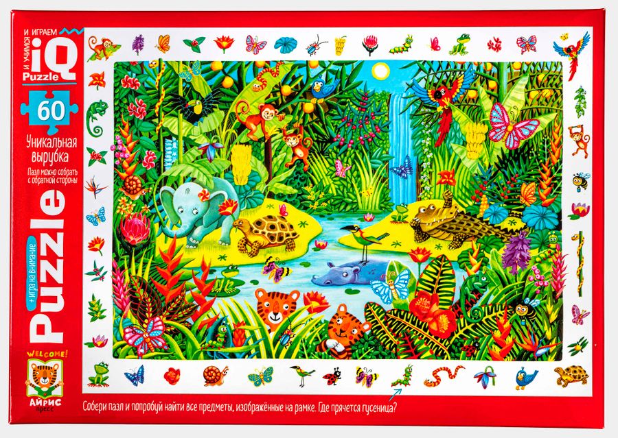 Яркая и увлекательная головоломка из серии «IQ пазлы» не только порадует и надолго увлечёт ребёнка, но и поможет ему подготовиться к учёбе. Собирая сюжетный рисунок, он потренирует внимание, мелкую моторику и усидчивость, научится самостоятельности и разовьёт логическое и пространственное мышление. В коробке 60 деталей, которые складываются в картинку с озорными обитателями джунглей. Но соотнести элементы друг с другом и собрать рисунок — это только полдела. Когда пазл будет готов, попросите ребёнка найти на рисунке предметы, расположенные в рамке по контуру — такая игра на внимание понравится и самым маленьким детям, и ребятам постарше. И ещё одна особенность «IQ пазлов»: каждая их деталь имеет уникальную форму и встаёт только на своё место. Поэтому пазл можно складывать несколькими способами, в том числе с оборота, без опоры на картинку. Подходит для детей от 4 лет.